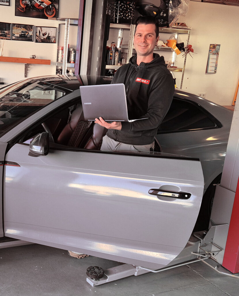 Dann lesen wir das Steuergerät aus, optimieren die Daten individuell und spielen sie wieder ein – in der Regel innerhalb von 1,5 bis 2 Stunden.